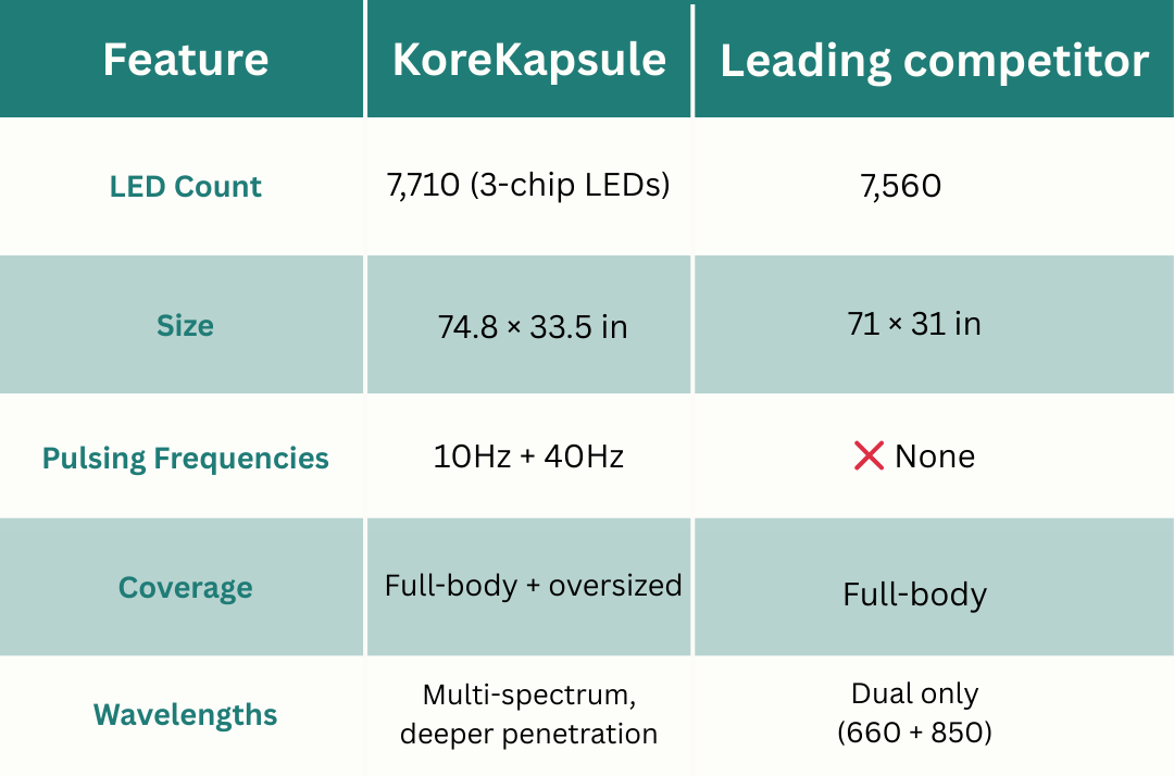 Your health deserves more than “good enough.” Here’s why the KoreKapsule is the only at-home system designed to match and exceed clinic-grade devices: