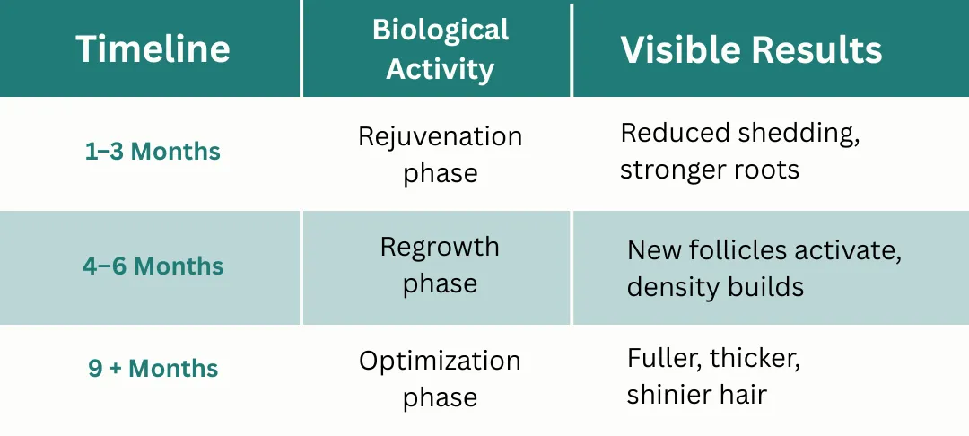 Together they retrain your scalp’s ecosystem to produce thicker, stronger, more vibrant hair — naturally.