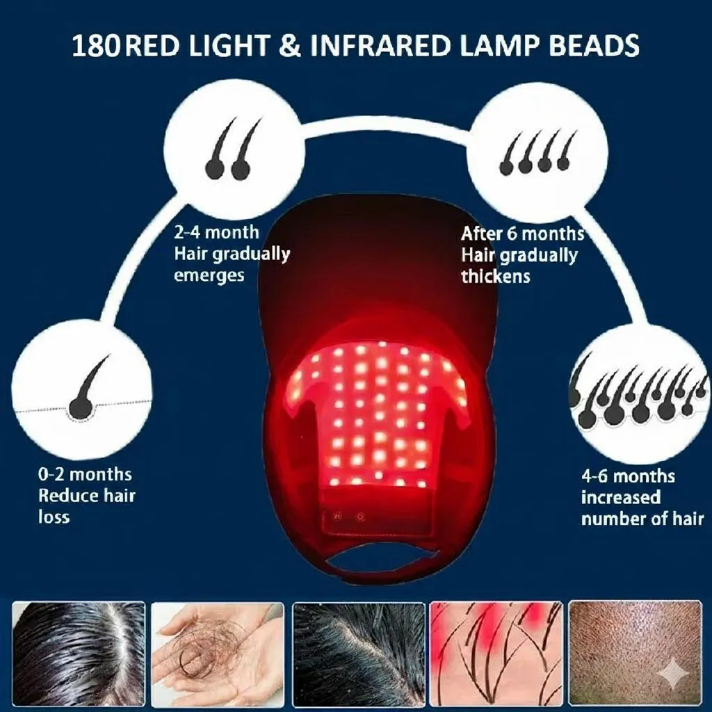 Red + near-infrared light boost micro-circulation, reduce inflammation, and flood follicles with oxygen and nutrients.